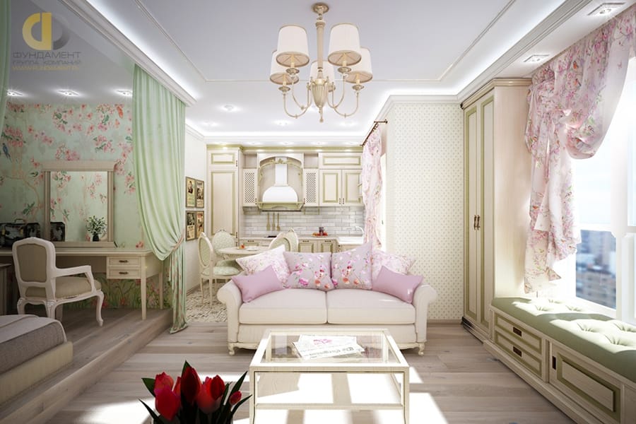 Вся мебель и материалы указаны в дизайн-проекте и спецификации к нему. Вы сможете выбрать из нескольких вариантов.